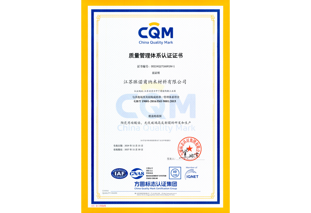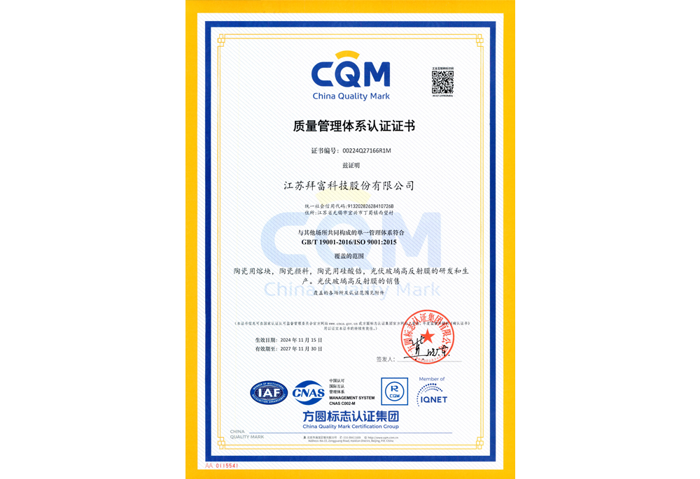 質(zhì)量管理體系認(rèn)證證書