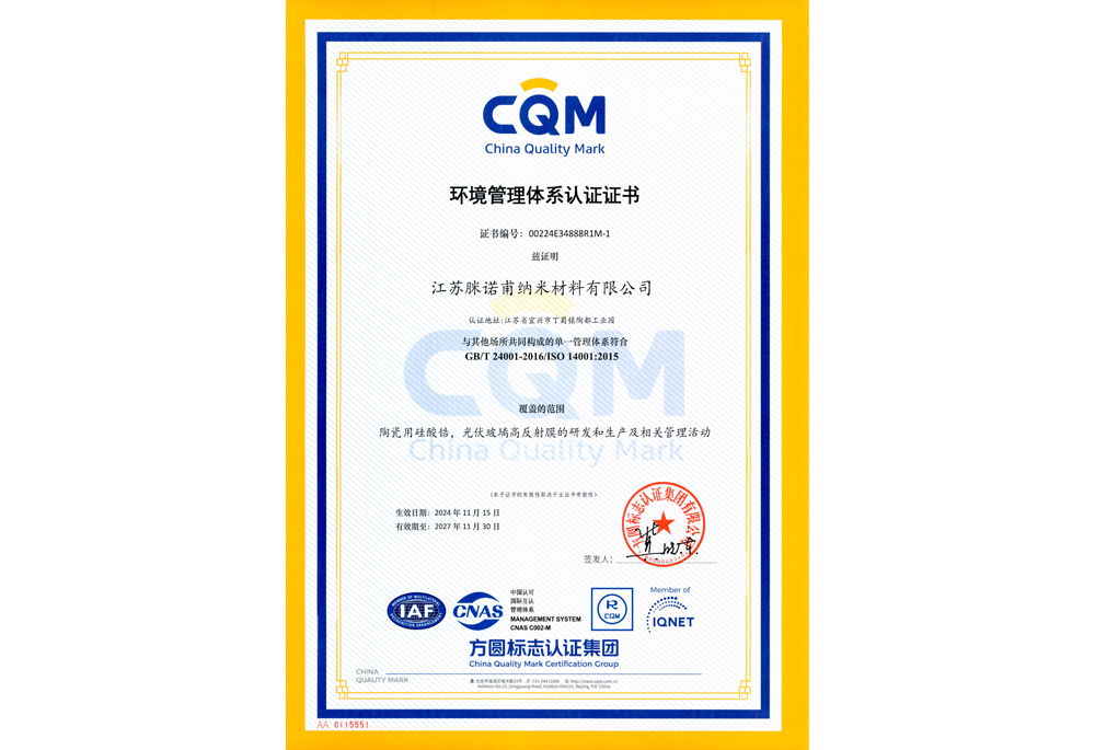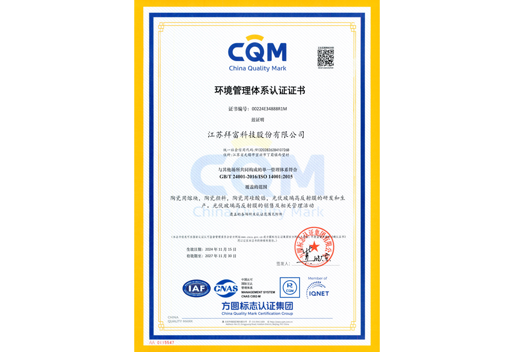 環(huán)境管理體系認(rèn)證證書
